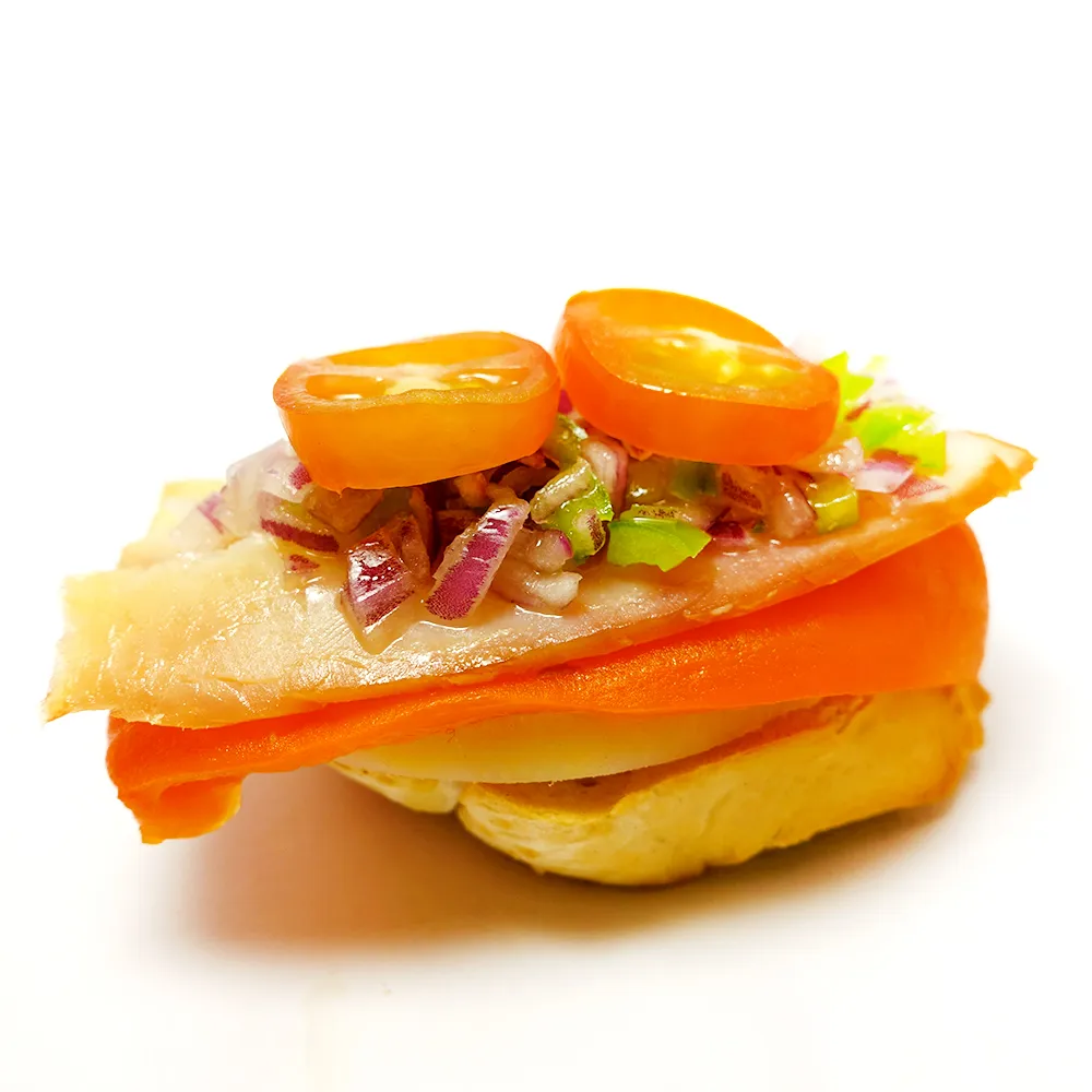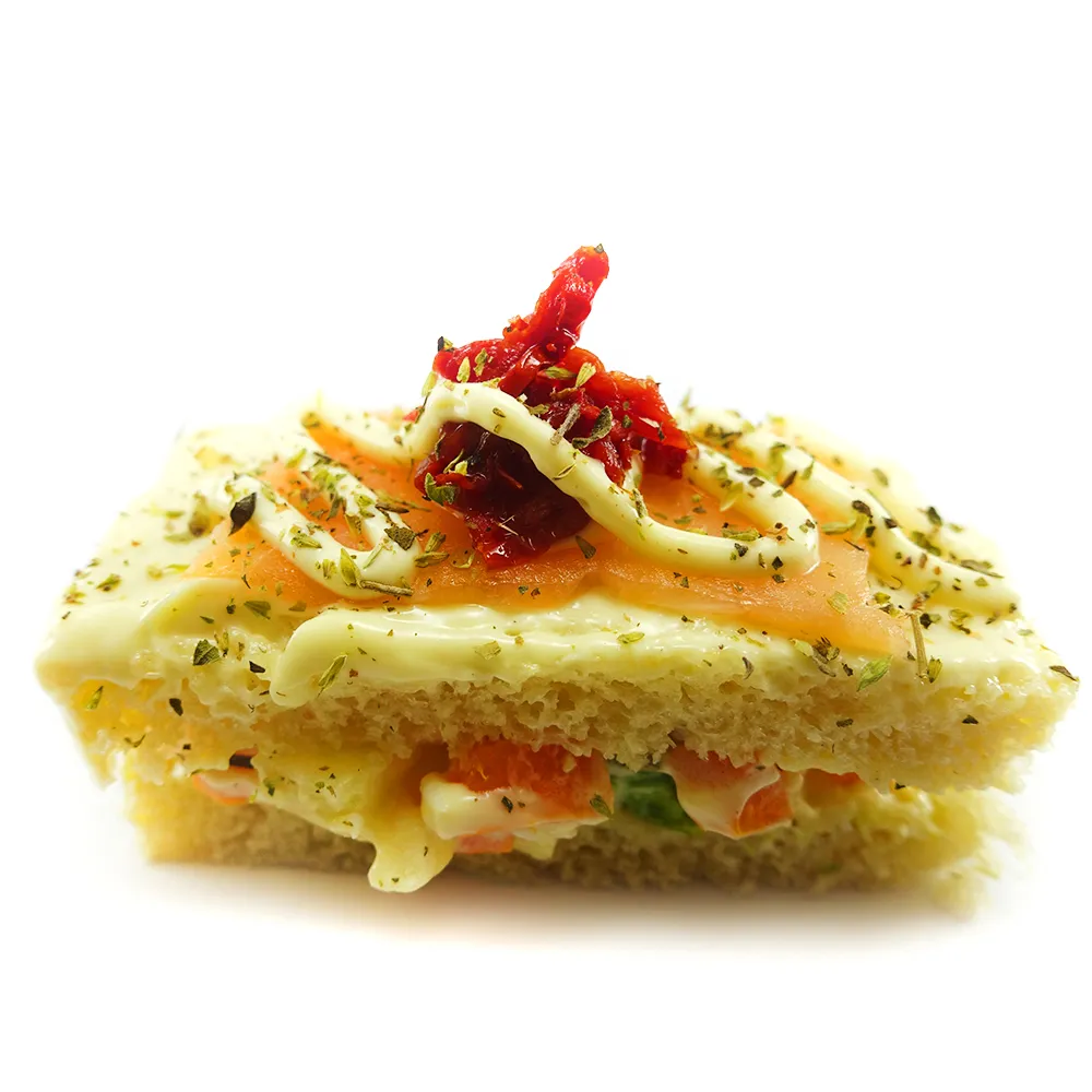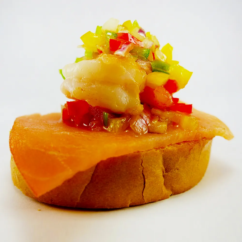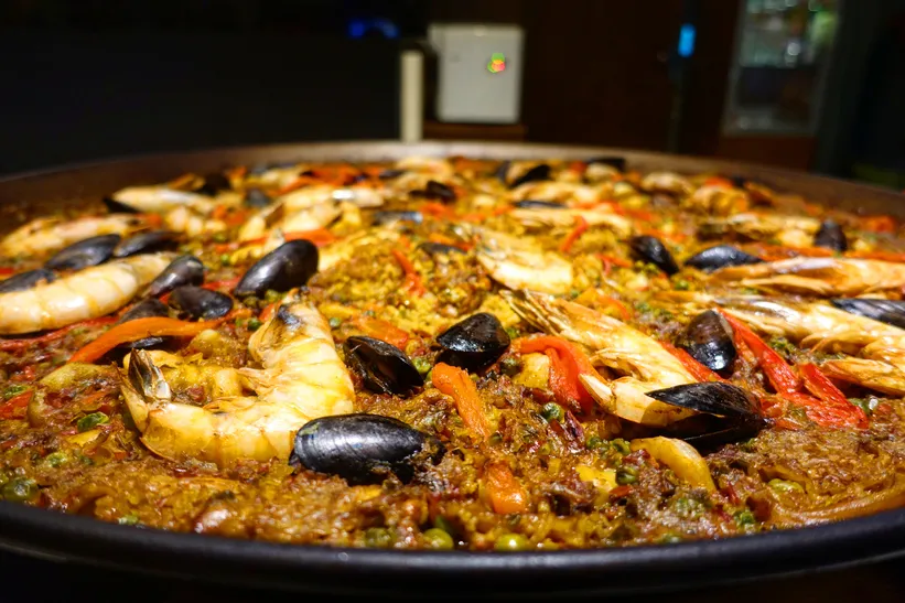 Muslito de pollo, langostino, camarones, mejillones con y sin cáscara, aros de calamar, pimiento rojo, verde, cebolla, tomate y arveja. (4hs. de antelación)